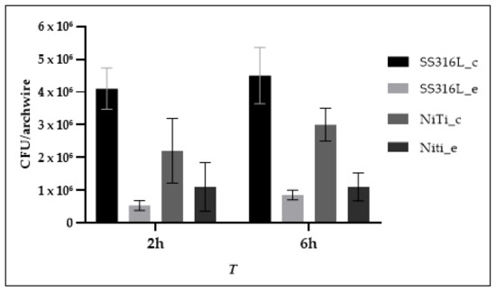 - Kim, I.H.; Park, H.S.; Kim, Y.K.; Kim, K.H.; Kwon, T.Y. Comparative short-term in vitro analysis of mutans streptococci adhesion on esthetic, nickel-titanium, and stainless-steel arch wires. Angle Orthod. 2014, 84, 680–686. [Google Scholar] [CrossRef]