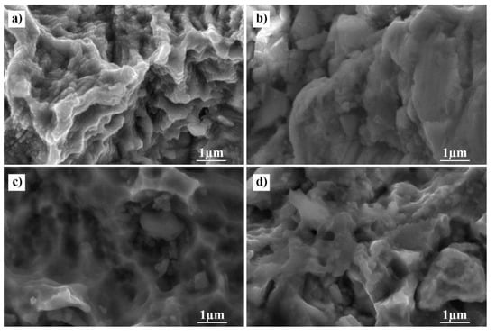 The SEM images were obtained using a Quanta 650FEG scanning electron microscope from Thermo Fisher Scientific (Waltham, MA, USA) paired with an Octane Silicon Drift Detector EDS sensor (EDAX, AMETEK, Inc., Berwyn, PA, USA) using the following parameters: acceleration 10 keV, spot size 4 nm, working distance 14 mm, dwell time 1 μs, and a pressure of 7.5 mPa.