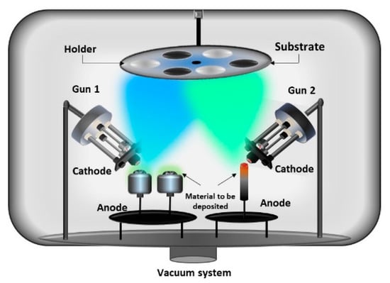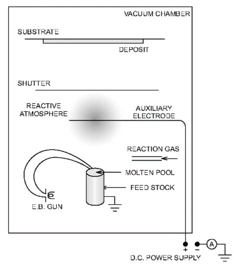 - Bunshah, R.F.; Raghuram, A.C. Activated Reactive Evaporation Process for High Rate Deposition of Compounds. J. Vac. Sci. Technol. 1972, 9, 1385–1388. [Google Scholar] [CrossRef]