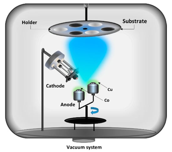 - Răsleanu, D.; Ilie, D.; Ionescu, V.; Mocanu, V.; Mureşan, M.G.; Oancea-Stănescu, I.M.; Ciupină, V.; Prodan, G.; Vasile, E.; Mustaţă, I.; et al. Thermionic vacuum Arc deposited Cu and Co nanostructured multilayers: Synthesis and characterization. J. Optoelectron. Adv. Mater. 2010, 12, 834–838. [Google Scholar]
