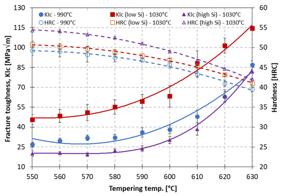 - Leskovšek, V.; Šuštaršič, B.; Jutriša, G. The influence of austenitizing and tempering temperature on the hardness and fracture toughness of hot-worked H11 tool steel. J. Mater. Process. Technol. 2006, 178, 328–334. [Google Scholar] [CrossRef]