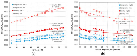 - Yield and maximum compression and bending strength of the tool steel substrate show rising linear dependency on hardness and reduced trend with fracture toughness. On the other hand, strain hardening exponent has no direct correlation with hardness but shows rising trend with increased fracture toughness.