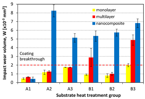 - Substrate hardness is the most influential parameter also when it comes to impact wear resistance, which is true for different types of hard coatings. However, except for very brittle coatings fracture toughness of the steel substrate should be above 12 MPa√m and hardness in the range of 64–65 HRC, thus providing combination of high load-carrying capacity, good fatigue properties and superior resistance against impact wear.