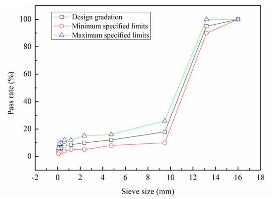 The aggregate gradation of the matrix asphalt mixtures is shown in Table 8 and Figure 1. The void ratio of matrix asphalt mixtures is 25%.