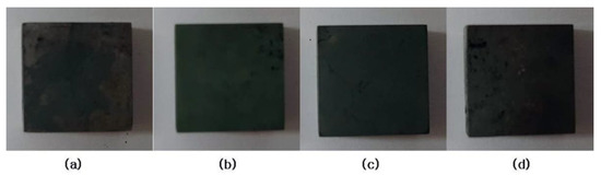 Cr–5% Si (at.%) with different Al contents (0, 5, 10, and 20 at.%), which are candidates for high-temperature coating materials, were vacuum-arc melted (KHAM-500, Misung S & I, Cheonan, Korea) and cast to produce 35 g of button-shaped ingots. Commercially pure Cr, Al, and Si materials (99.9 wt.%, NeoDM, Daejeon, Korea) were used for the vacuum melting. Then, 10 × 10 × 5 mm plate specimens were prepared by electric-discharge machining the ingots and used for microstructure investigation and a high-temperature oxidation test. Two cast ingots were fabricated for the same composition, and four plate specimens were prepared for each ingot. Cross sections of the plate specimens were mechanically polished by using sandpaper and diamond suspension, with a diameter of 1 μm, to a mirror surface.
