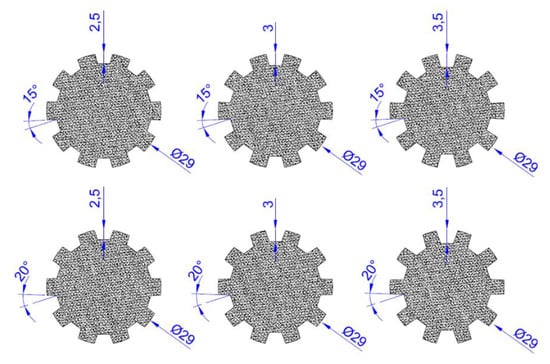 Figure 1, consist of a diameter of 29 mm, flank tilt angles of 15° and 20°, and the tooth depth of splines, which varies in three different depths: 2.5, 3, and 3.5 mm.