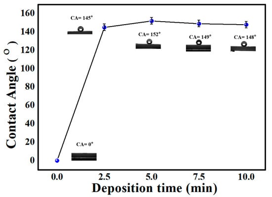 The contact angles of SF-nSiO2 with different deposition times.