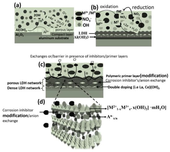 Iqbal, M.A.; Sun, L.; Barrett, A.T.; Fedel, M. Layered Double Hydroxide Protective Films Developed on Aluminum and Aluminum Alloys: Synthetic Methods and Anti-Corrosion Mechanisms. Coatings 2020, 10, 428. https://doi.org/10.3390/coatings10040428