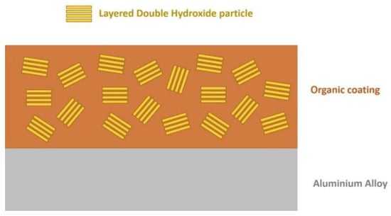 - Liu, J.; Zhang, Y.; Yu, M.; Li, S.; Xue, B.; Yin, X. Influence of embedded ZnAlCe-NO3- layered double hydroxides on the anticorrosion properties of sol-gel coatings for aluminum alloy. Prog. Org. Coat. 2015, 81, 93–100. [Google Scholar] [CrossRef]