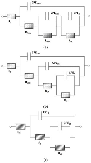 | LDH | Substrate | Potentiodynamic Curves | Electrochemical Impedance Spectroscopy | Ref. | |||||