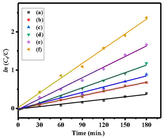 Further, to understand the reaction kinetics of the MB degradation catalyzed by fabricated catalysts, the experimental data were fitted by a first-order kinetic model as shown by following Equation (1):