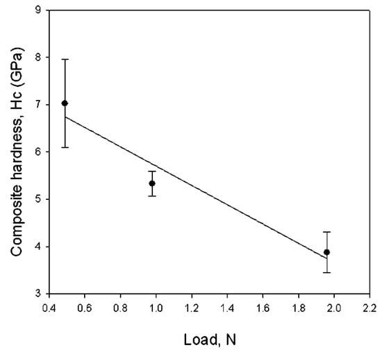 The most important result concerned the intrinsic films hardness, which, with a value of 52 ± 6 GPa (Figure 5), was very close to that of ReB2 bulk (55.5 GPa) [].
