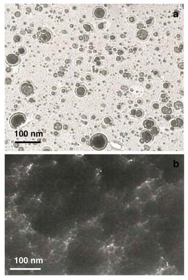 TEM microphotographs of (a) TiC film using a 5 min deposition at a distance of 2.0 cm from the target; (b) TiC film using a 30 min deposition at a distance of 2.0 cm. Reprinted with permission from [], copyright 2006 Elsevier.