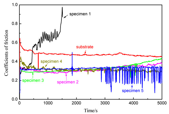 The friction coefficients of different specimens.