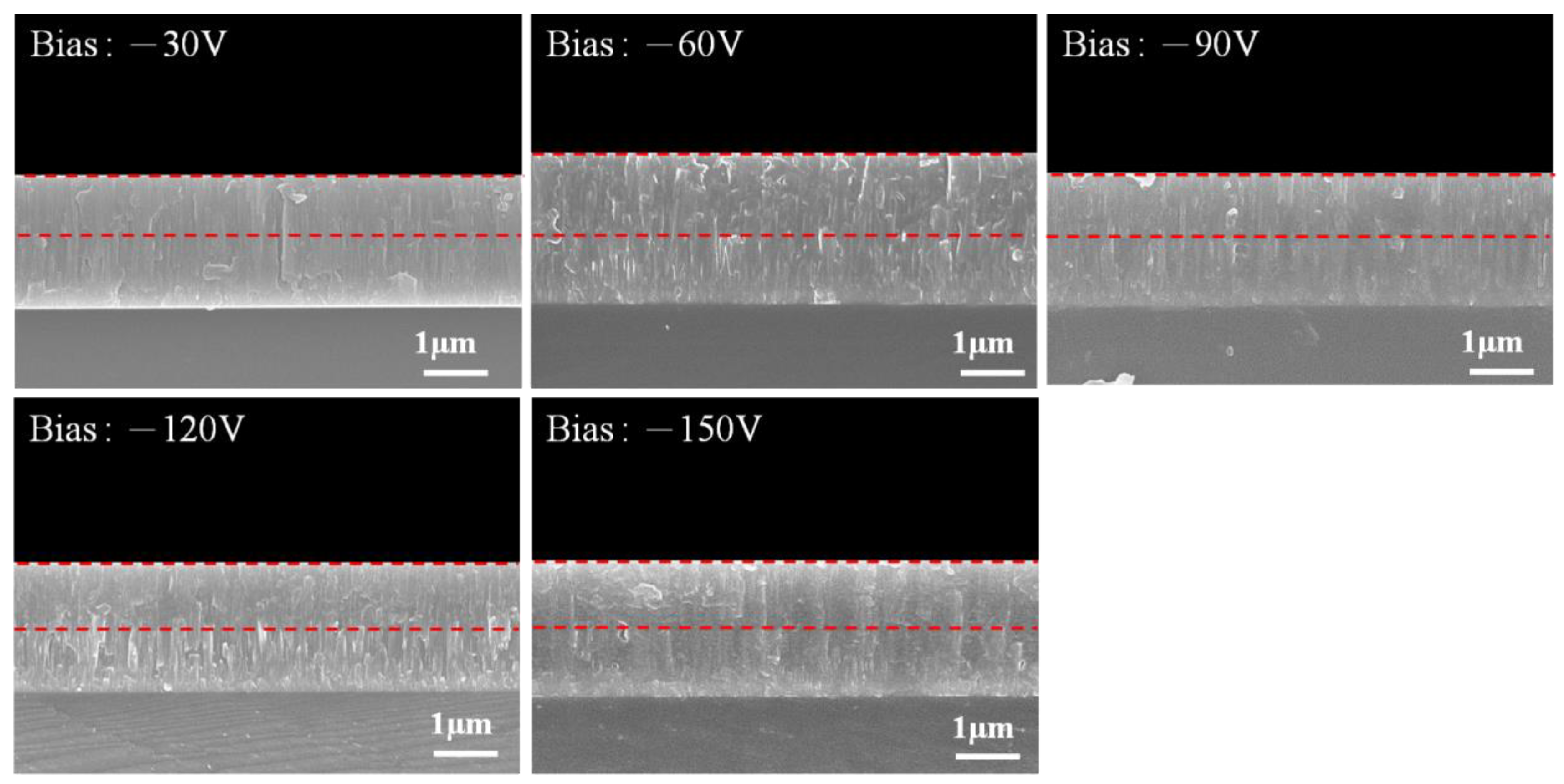 3.2. Effects of Bias Voltage on CrAlN Layers