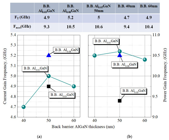 - Driad, S.B.; Maher, H.; Defrance, N.; Hoel, V.; De Jaeger, J.C.; Renvoise, M.; Frijlink, P. AlGaN/GaN HEMTs on silicon substrate with 206-GHz FMAX. IEEE Electron Device Lett. 2013, 34, 36–38. [Google Scholar] [CrossRef]