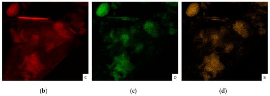 These images are very interesting as it is very rare to be able to observe a graphene-based flake in profile, and even more difficult to analyse the presence of particular elements on its plane. These qualitative results confirm the effective presence of silane on the surface of the GO flakes, as previously studied in depth with infrared spectroscopy, X-ray diffraction analysis, and nuclear magnetic resonance techniques [,].