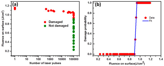 The laser-induced damage of optical components has become an ineluctable issue since the invention of lasers. Along with the developments in high-damage resistance optical coating technologies, the evolution of the development of laser technologies such as mode locking, chirped pulse amplification and optical parametric amplification led to the current state-of-the-art high-power laser systems [1,2,3,4,5,6]. The development of high energy ultrashort lasers has attracted many research domains because of their high peak powers (greater than 1 PW) and high intensities (greater than 1022 W/cm2) at focal volume. These features of high-power lasers enable access to new material states in laboratory conditions [7]. Therefore, high-power ultrafast lasers render the wide spectrum of applications in science, including relativistic laser–matter interactions and compact laser accelerators [8,9,10], laboratory astrophysics [11], proton therapy [12] and soft and hard x-rays generation [13,14].