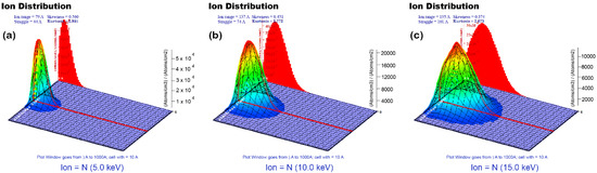 Monte Carlo simulation program (TRIM) simulations for nitrogen profiles of implanted samples: (a) 5 kV, (b) 10 kV, (c) 15 kV.