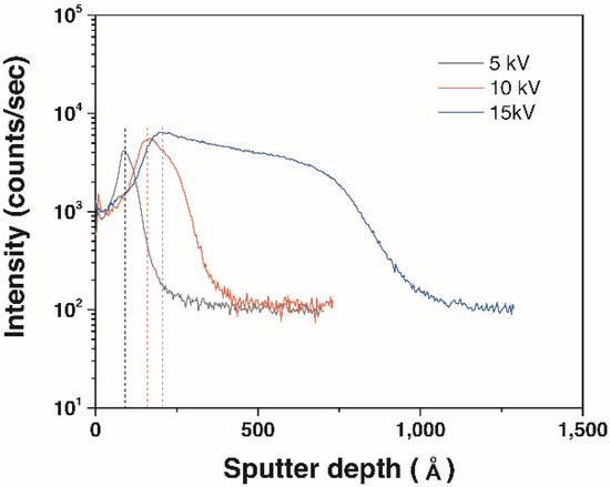 As shown in the calculated ions distribution (Figure 2), implantation depth is increased with increasing applied bias voltages. These calculated results are highly consistent with the LSS theory. In comparison with lower bias voltages, higher bias voltage induces the migration of peak nitrogen concentration into the inside of the substrate. This implies that migration of nitrogen concentration could not effectively modify surface region and suppress nucleation and growth of pitting on the surface. Based on the obtained calculations, we assume that an excessively high bias voltage degrades corrosion resistance. Thus, the experimental parameter (bias voltages) was limited under 20 kV.