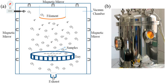 (a) the schematic of AO exposure experiment; (b) the ground-based AO effects simulation facility.