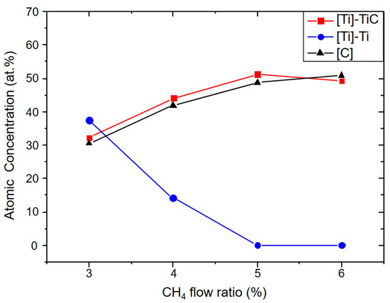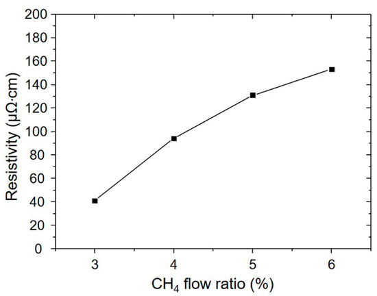 3.1. Influence of the CH4 Flow Ratio on Film Characteristics
