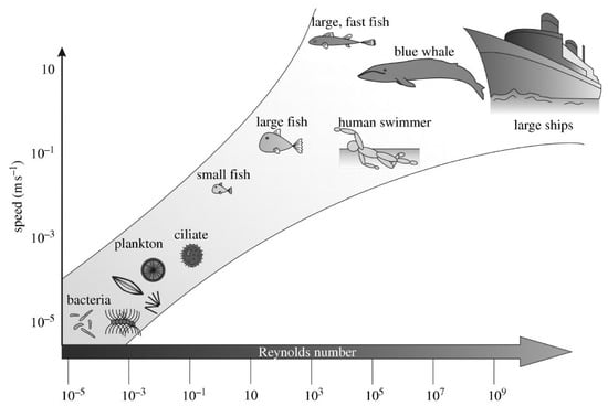 Reynolds numbers for various marine biofoulers and other relevant species and systems (e.g., fish, large mammals, ships). Reproduced from reference [11], with permission. Copyright (2010) The Royal Society.