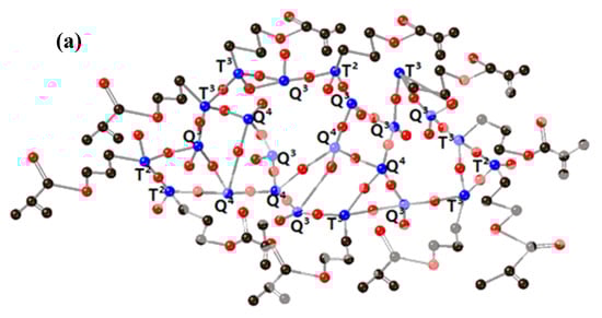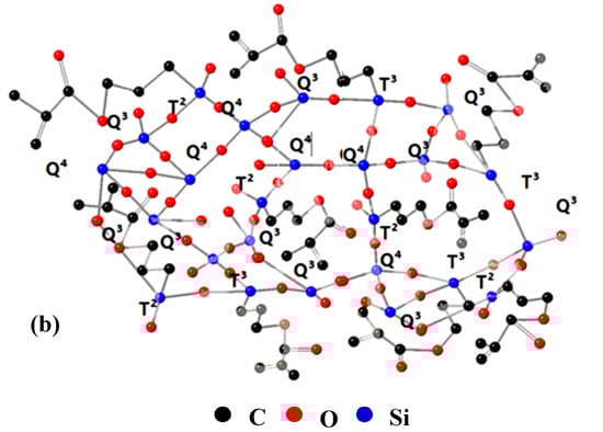 These values were used to deduce the condensation degrees of T and Q species of these polysiloxane hybrids. The condensation degree of T and Q species was calculated according to the next expressions [34,36]: