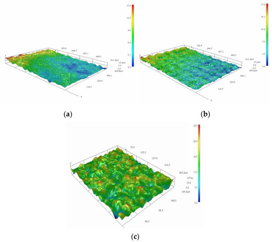 Surface profile of the specimen (a–c represent samples 1, 2, and 3 respectively).
