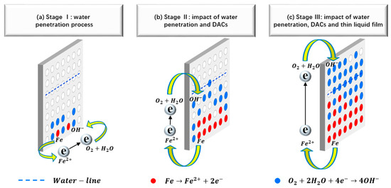 - Jiang, J.; Wang, J.; Wang, W.; Zhang, W. Modeling influence of gas/liquid/solid three-phase boundary zone on cathodic process of soil corrosion. Electrochim. Acta 2009, 54, 3623–3629. [Google Scholar] [CrossRef]