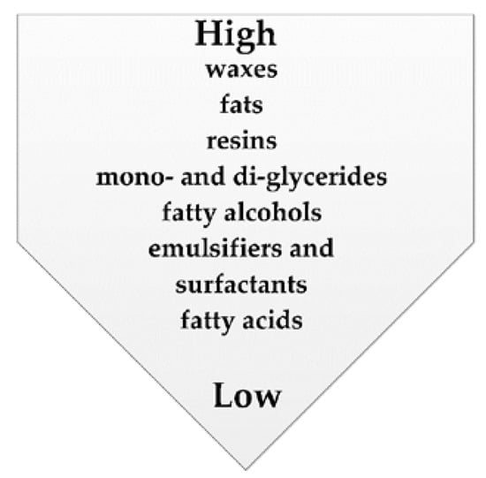 • Generally Recognized as Safe (GRAS) labeling or GRAS/FS (some compounds are safe for use in food industry; however, their concentrations is limited by currently used standards). In this respect, the main goal is to avoid toxic, allergic, and/or non-assimilable components [7,8,9,10,11,12,13,14,15];