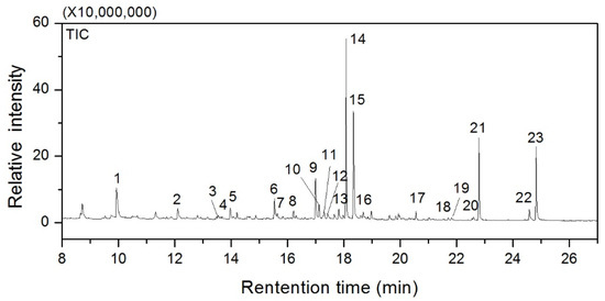 A list of compounds identified by total ion chromatography of mortar obtained by pyrolysis–gas chromatography–mass spectrometry.