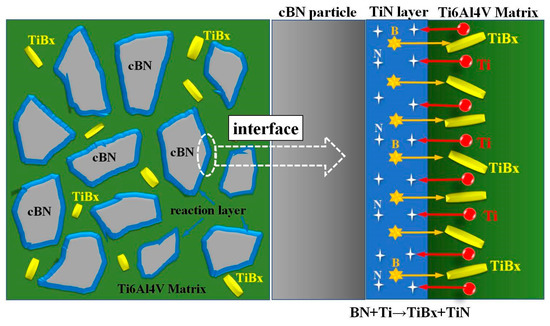 Reaction mechanism of the transition layer at the interface between the cBN particles and Ti6Al4V alloy matrix.