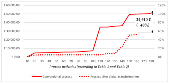Costs comparison of the conventional process and the process after digital transformation.