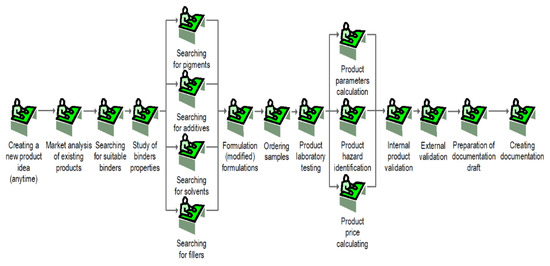 For the research, it was necessary to prepare two models of the paints and coatings development process execution: