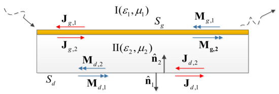 Equations (7)–(11) are coupled and solved to determine the unknown electric and magnetic currents Jg, Jd, Jr, Mg, and Md.