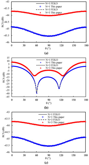 The matrix Equation (23) is solved by increasing the degree of the WLP, and the surface current can be obtained, from which the radar cross section (RCS), extinction cross section (ECS), etc., can be computed.
