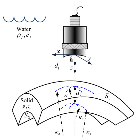 Ultrasonic measurement model includes two main parts: one is the system function, , which only considers all the electrical and electromechanical parts in the measurement system; and the other is the elastic/acoustic transfer function, , which describes the propagation, reflection, scattering, and reception processes of ultrasonic acoustics. The ultrasonic measurement model can be written as [9,12]