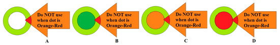 VITSAB TTI label: (A) Inactive; (B) after removing seal; (C) 100% expired; (D) 120% expired.