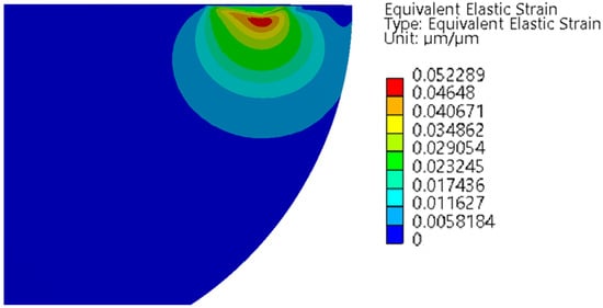 Figure 8. Elastic strain distribution in the particle after simulation of a variant 0.5 µm from the boundary.