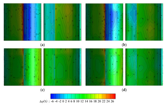 3.2. Influence of Film Cooling on the Relative Change of Temperature Outside the TBCs