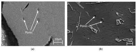SEM images of pores in the substrates: (a) GCI and (b) A380.