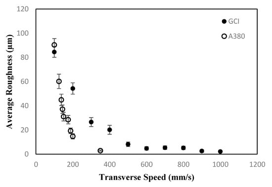 The effects of nozzle transverse velocity on surface roughness of GCI and A380.
