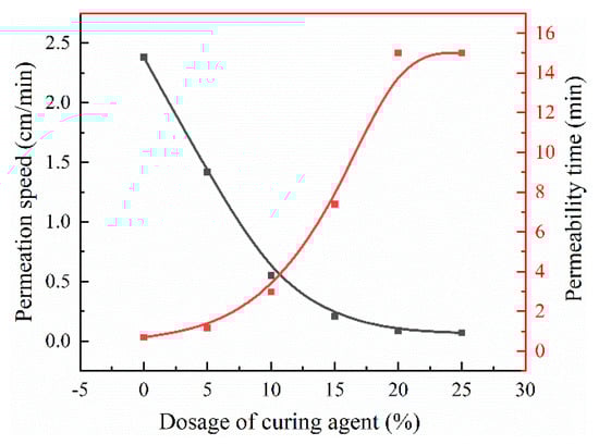 Table 4 and Figure 12 present the permeability of the epoxy emulsified asphalt under different curing agent dosages [31].