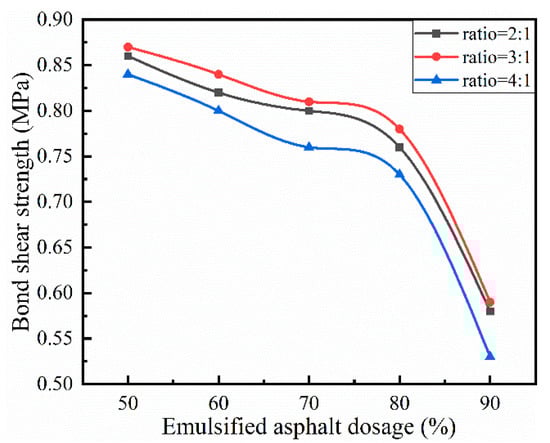 Bond shear strength of different dosage of epoxy emulsified asphalt.