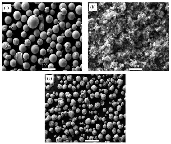 Microscan of raw material, (a) Ni60, (b) TiO2, (c) WC-12Co.