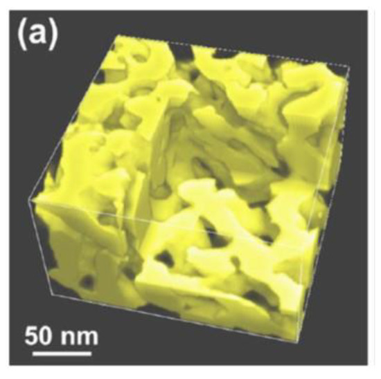 Three-dimensional tomographic reconstruction of NPG. This image reveals the internal bicontinuous structure of NPG. Reproduced with permission from [38]. Copyright American Physical Society, 2008.