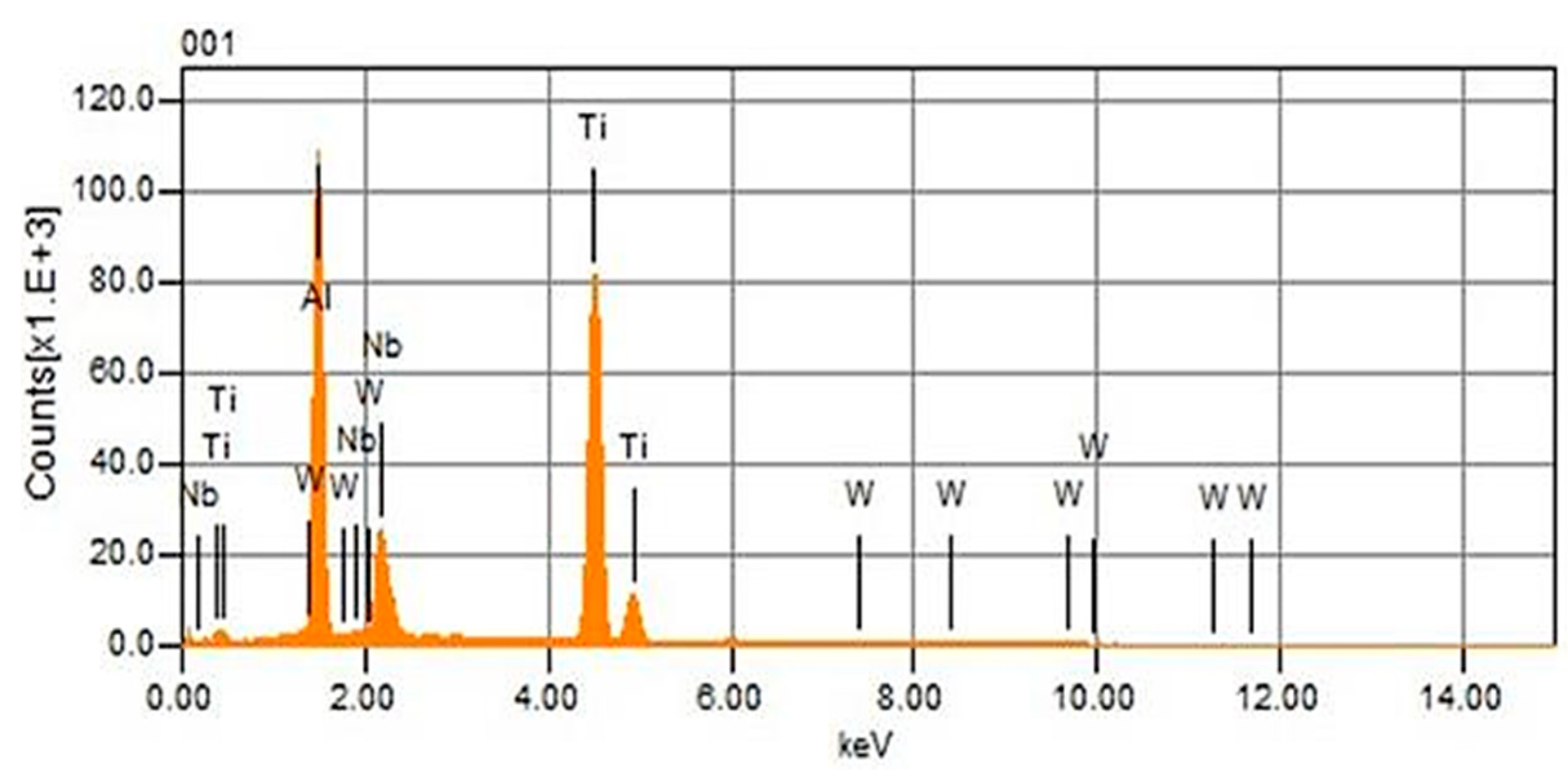EDS, chemical analysis of Ti–Al intermetallic based composite.