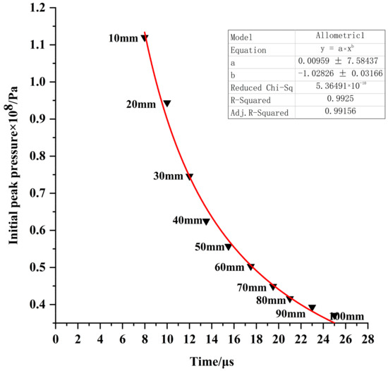where y is the initial pressure peak, a and b are the fitting coefficients, and b represents the rate of attenuation.