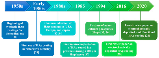 Chicago/Turabian StyleSafavi, Mir Saman, Frank C. Walsh, Maria A. Surmeneva, Roman A. Surmenev, and Jafar Khalil-Allafi. 2021. "Electrodeposited Hydroxyapatite-Based Biocoatings: Recent Progress and Future Challenges" Coatings 11, no. 1: 110. https://doi.org/10.3390/coatings11010110